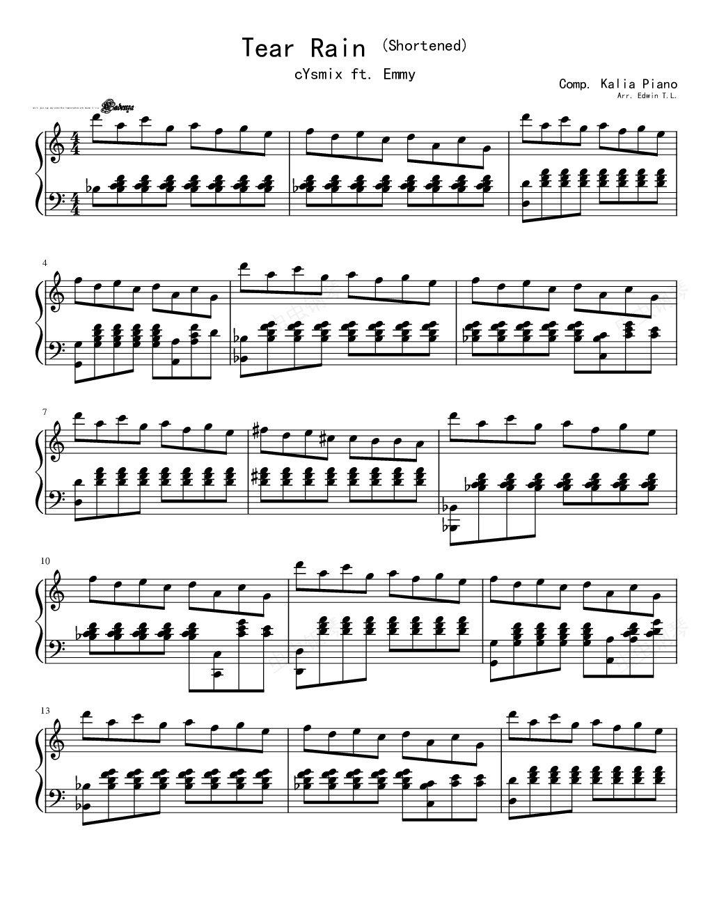 钢琴谱:【东方同人音乐】Tear Rain