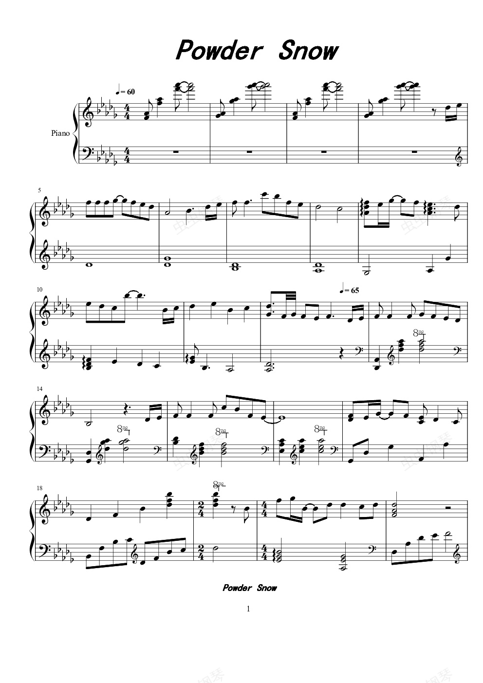 钢琴谱:Powder Snow【白色相簿】