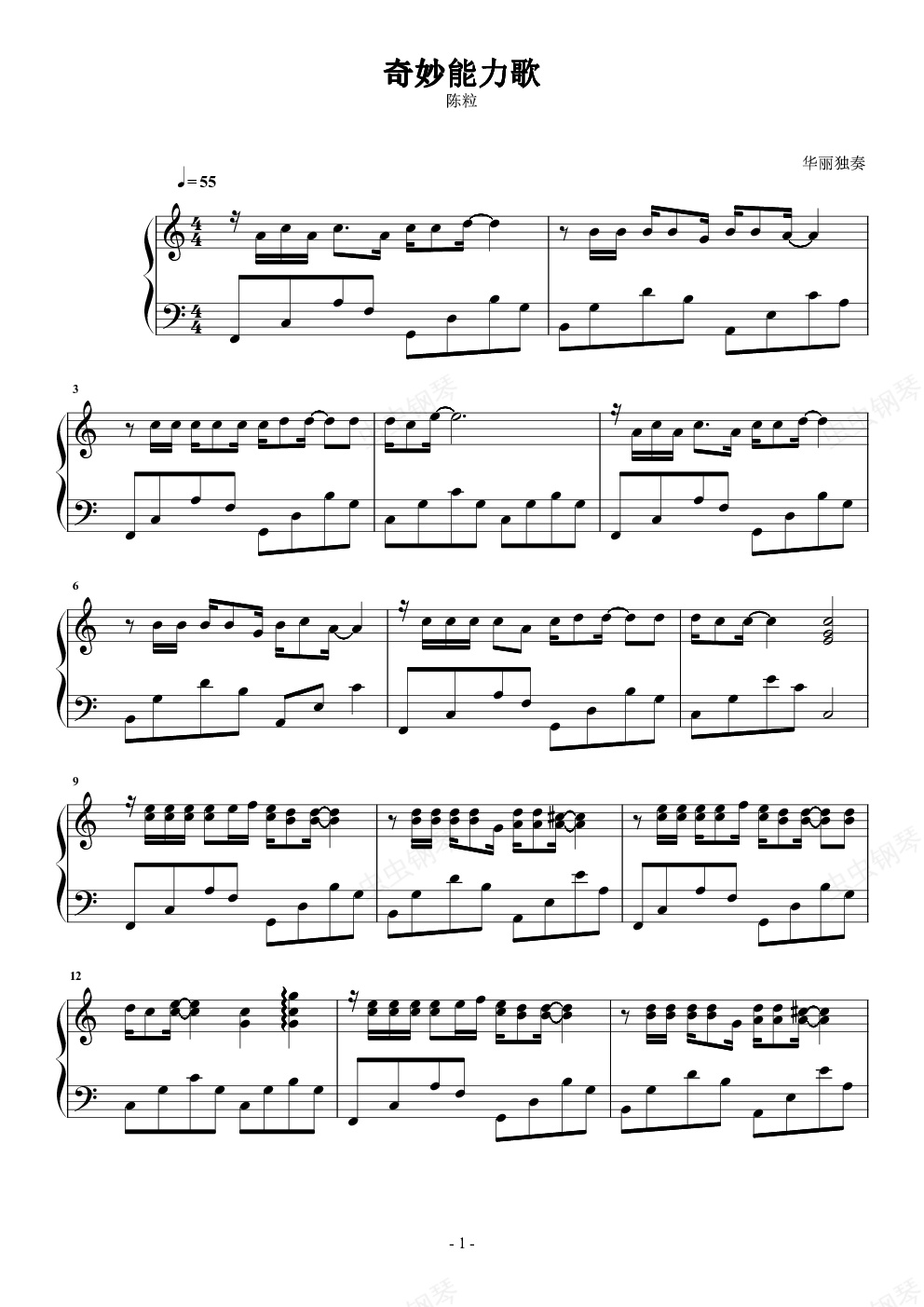 钢琴谱:奇妙能力歌 华丽独奏