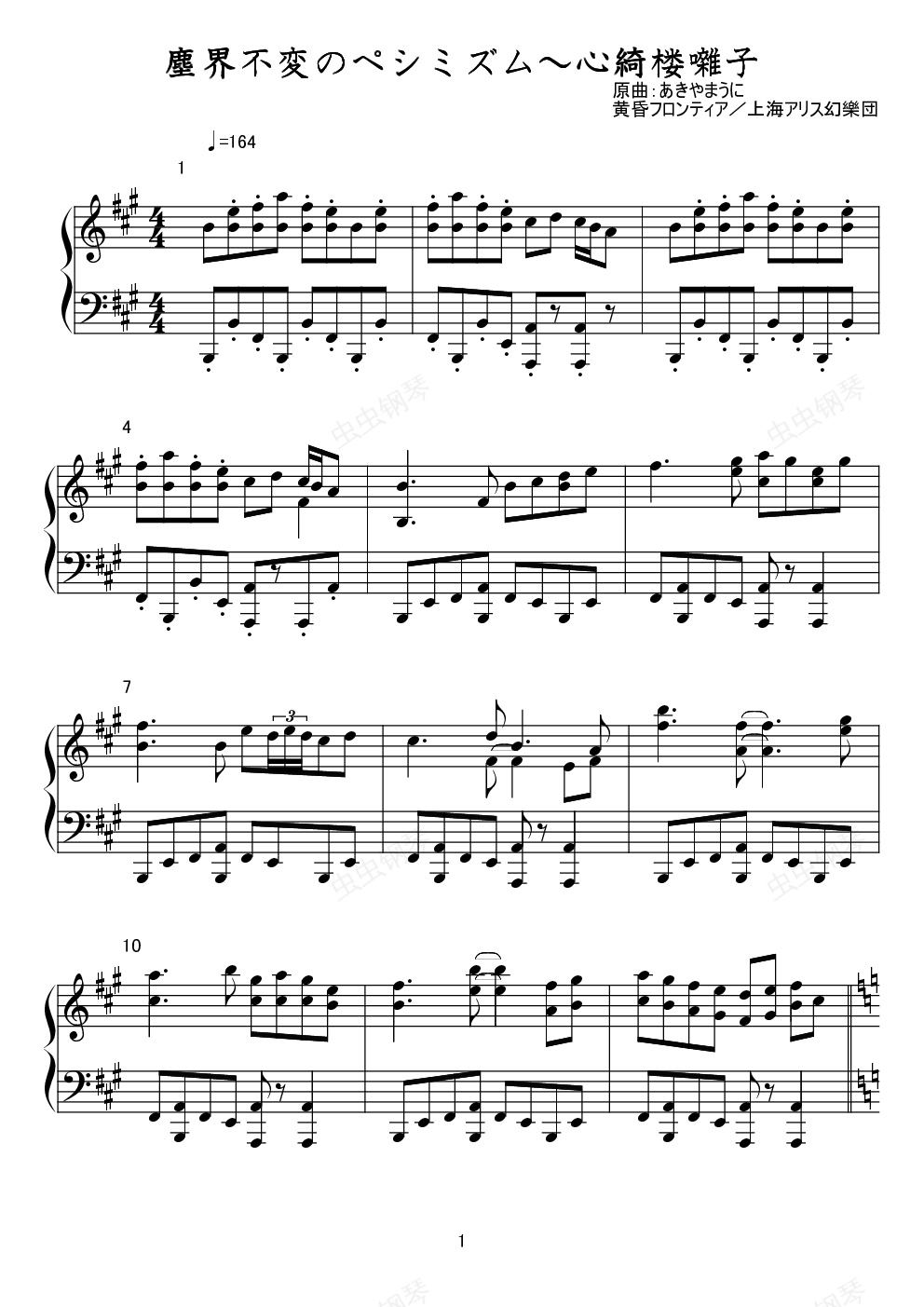钢琴谱:【东方心绮楼】尘世不变的悲观主义 ~ 心绮楼囃子
