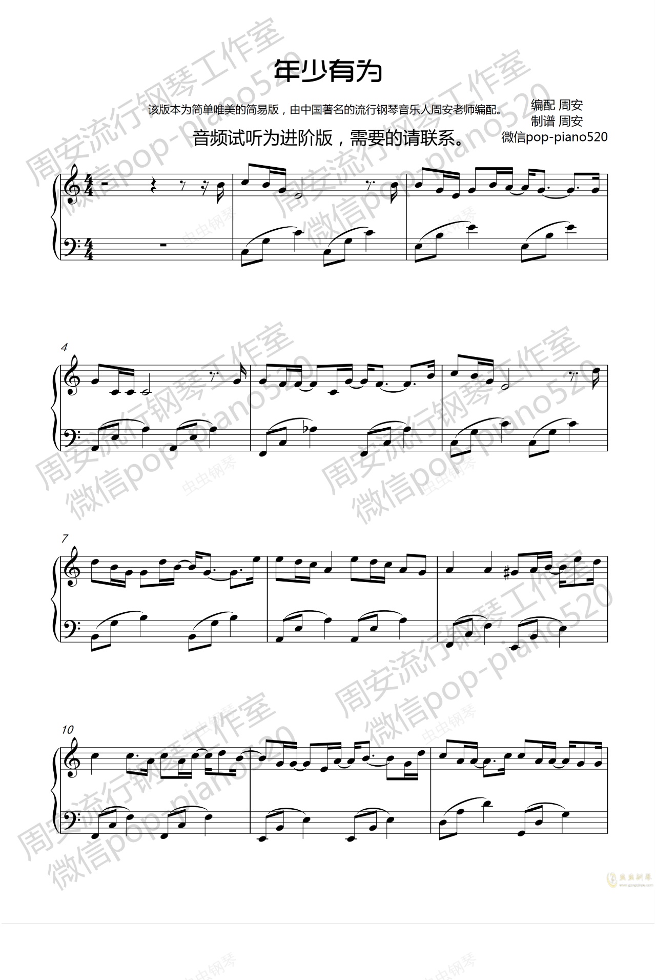 钢琴谱:《年少有为》唯美钢琴版(周安老师)