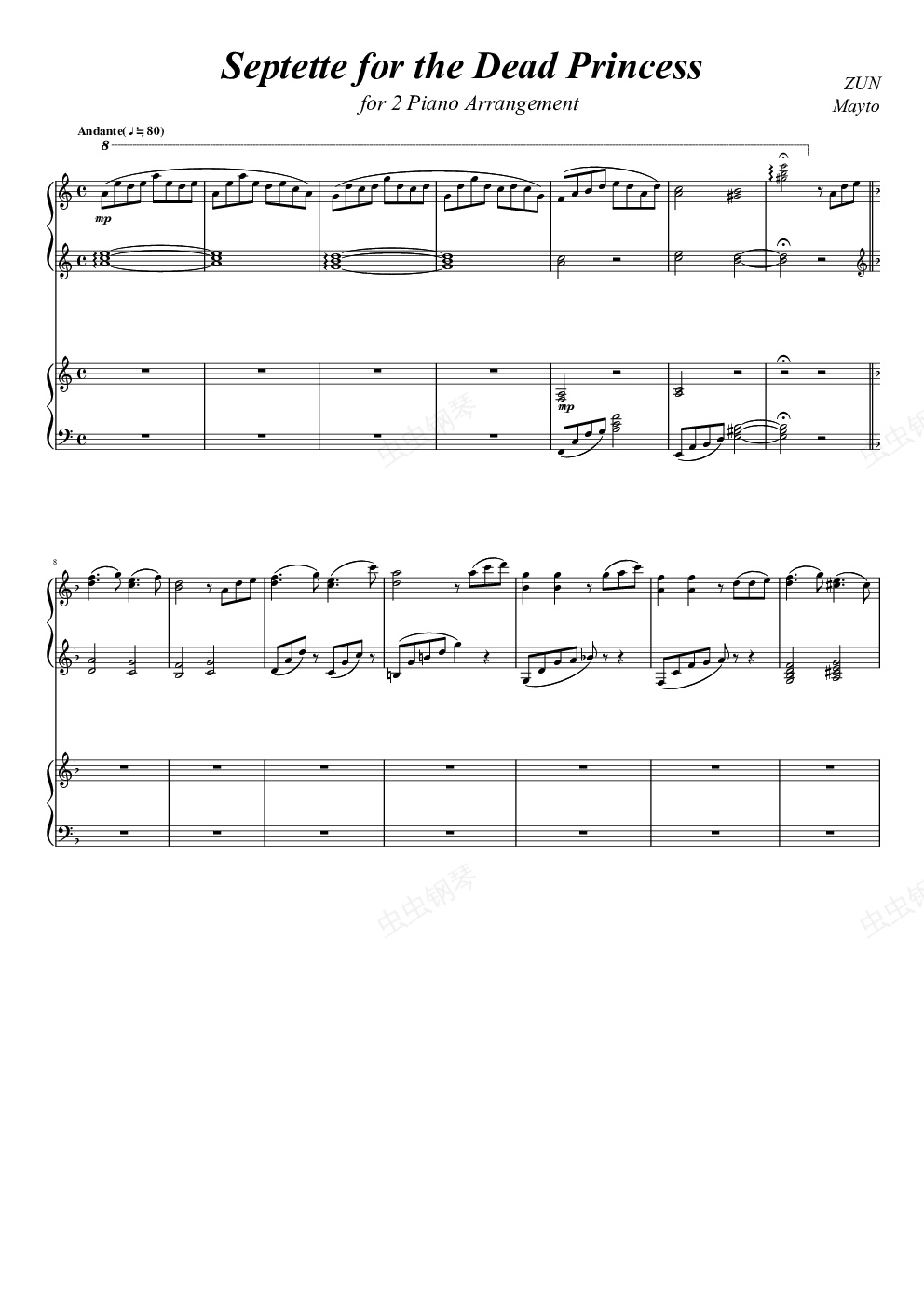 钢琴谱:【东方红魔乡】献给逝去公主的七重奏
