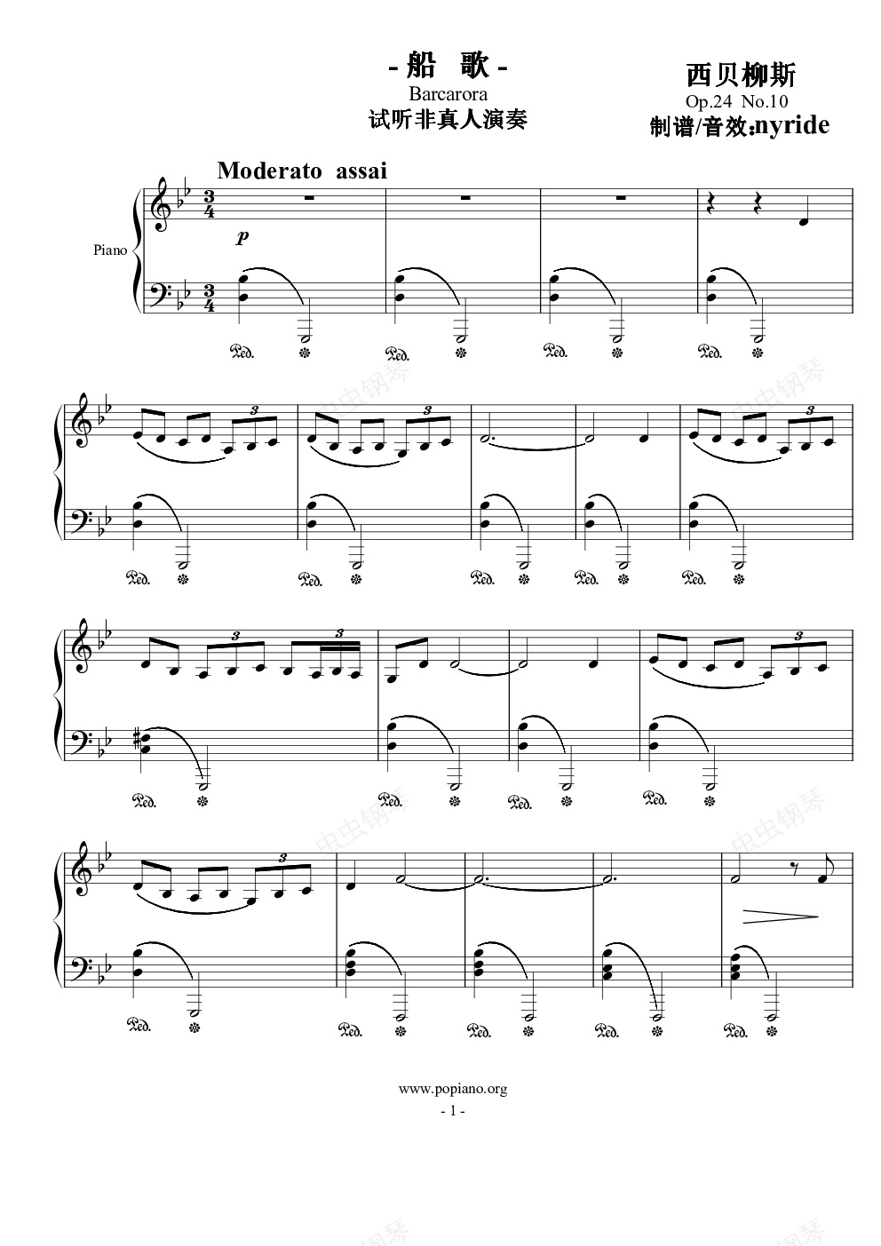 钢琴谱:西贝柳斯《船歌》Op.24 No.10
