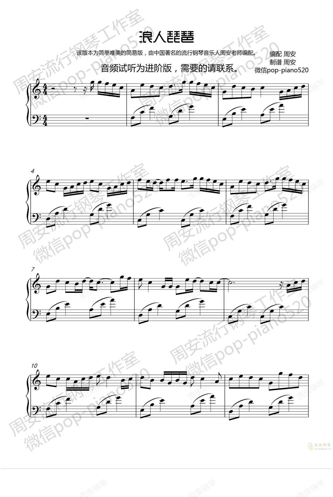 钢琴谱:《浪人琵琶》唯美钢琴版(周安老师)