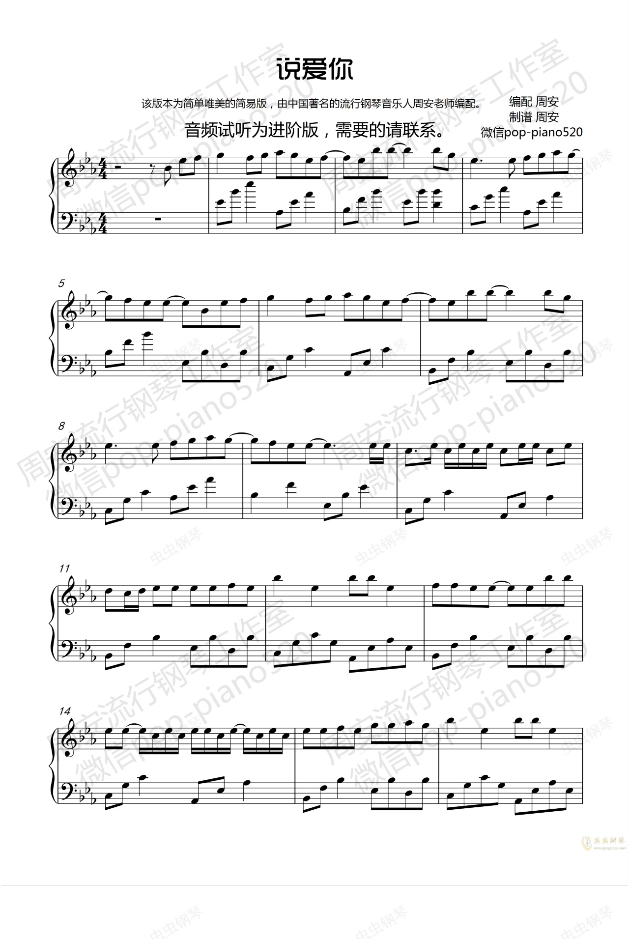 钢琴谱:《说爱你》唯美钢琴版(周安老师)