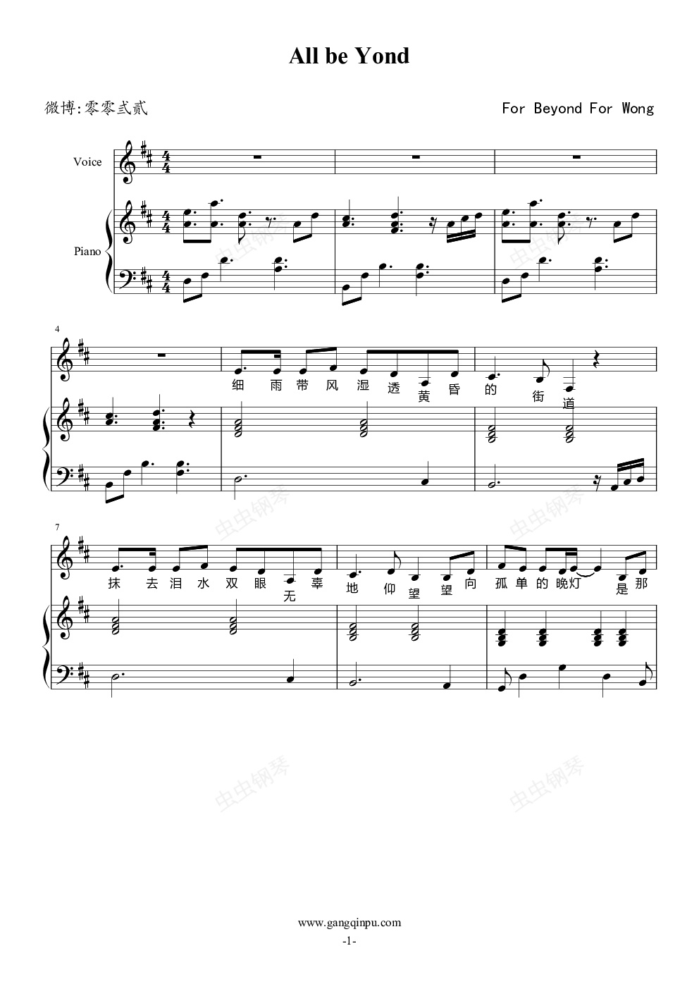 钢琴谱:低碳伴奏——《Beyond串烧》