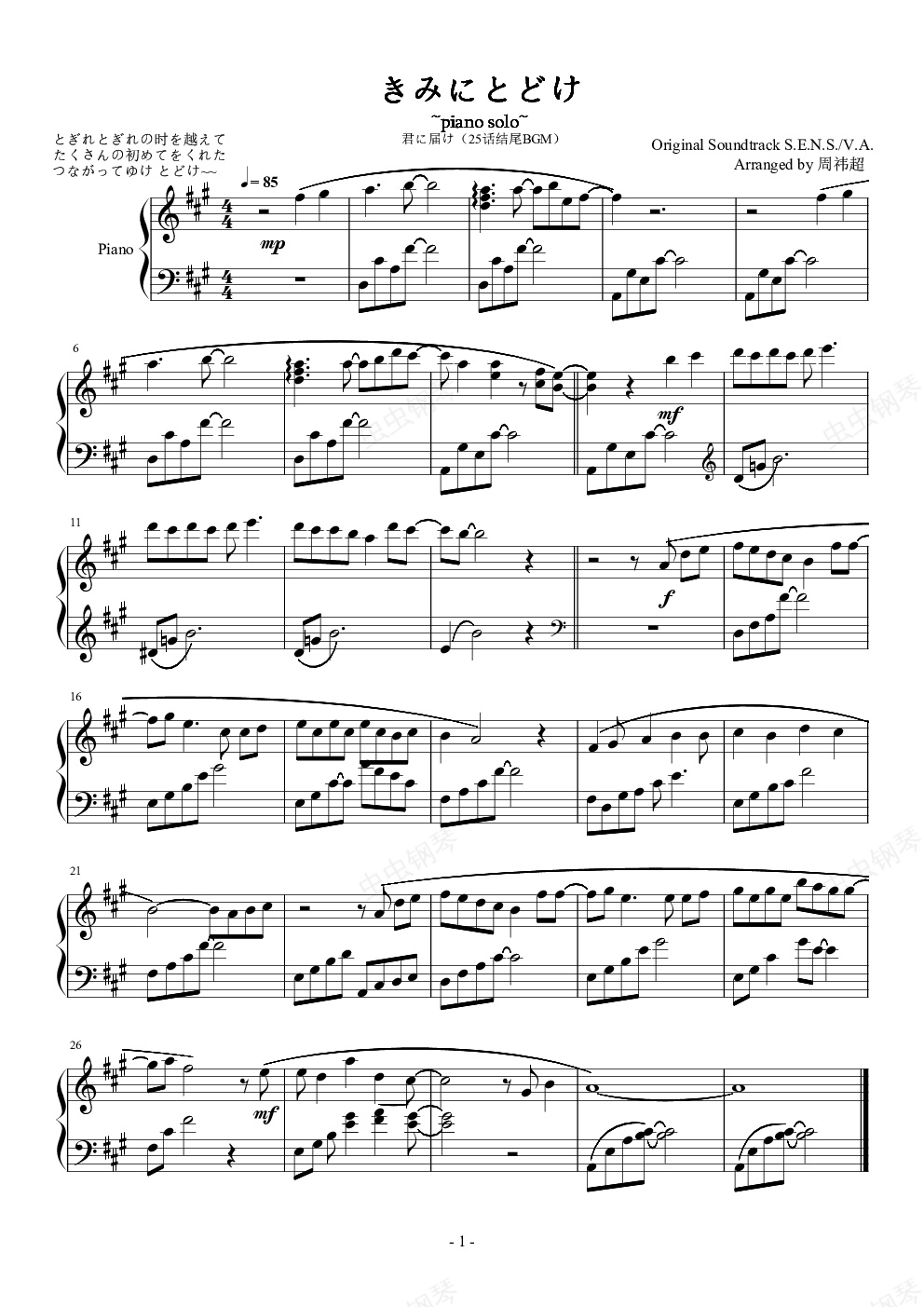 钢琴谱:きみにとどけ[好想告诉你BGM]