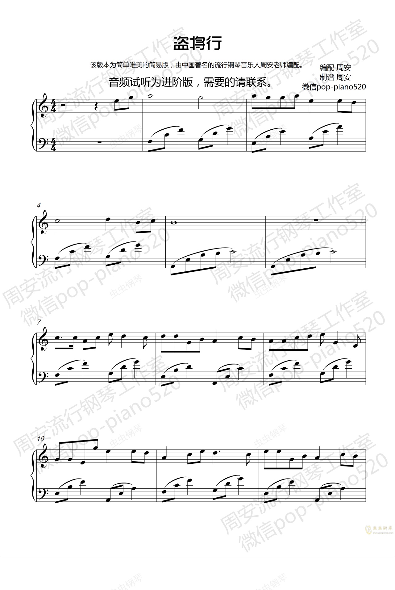 钢琴谱:《盗将行》唯美钢琴版(周安老师)