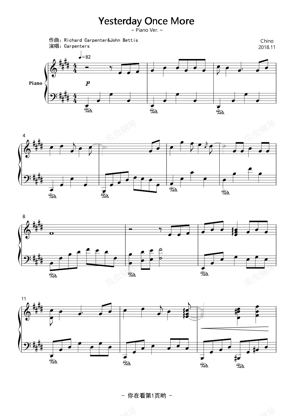 钢琴谱:【经典】Yesterday Once More ~ Piano Ver. ~