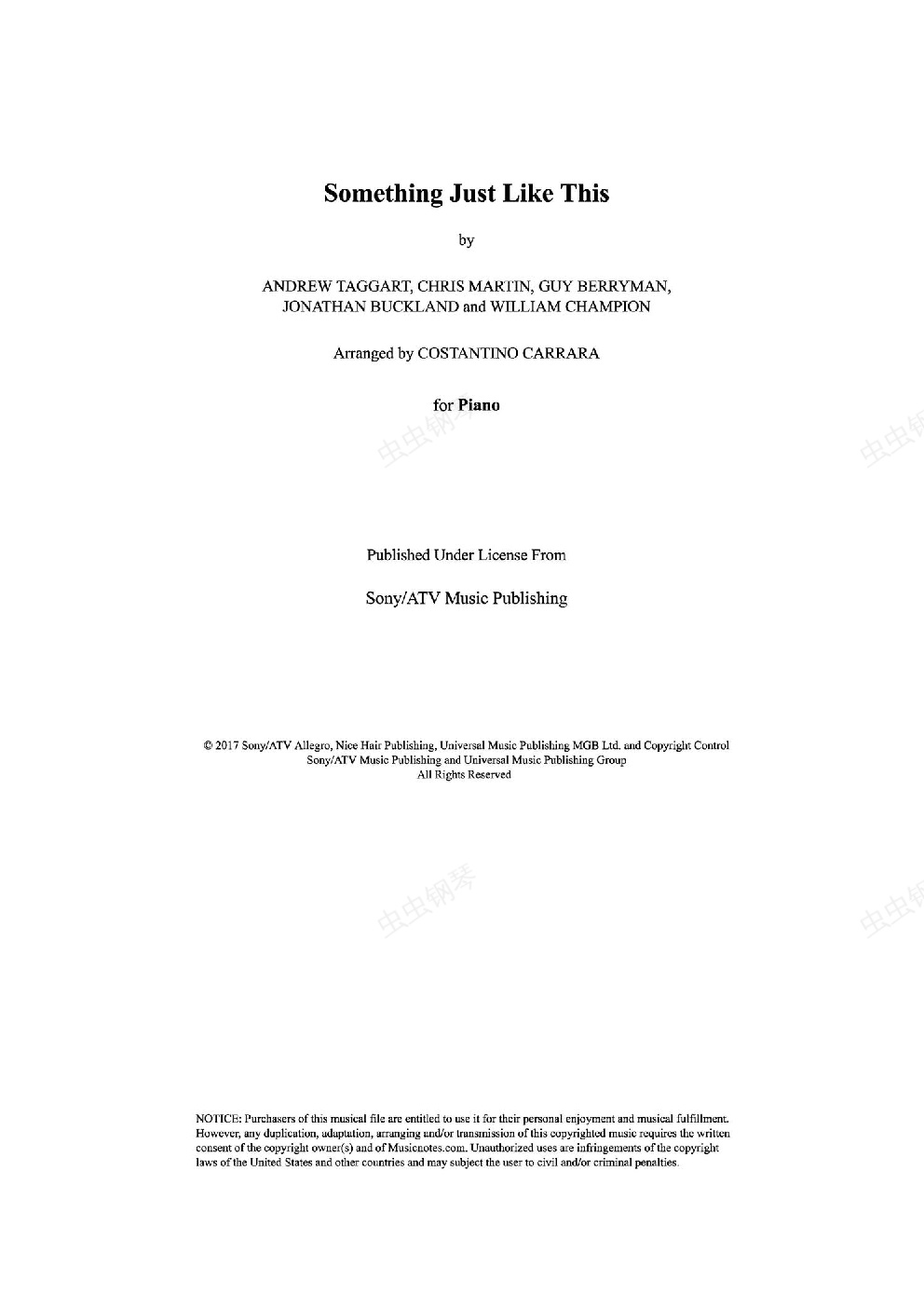 钢琴谱:Something Just Like This