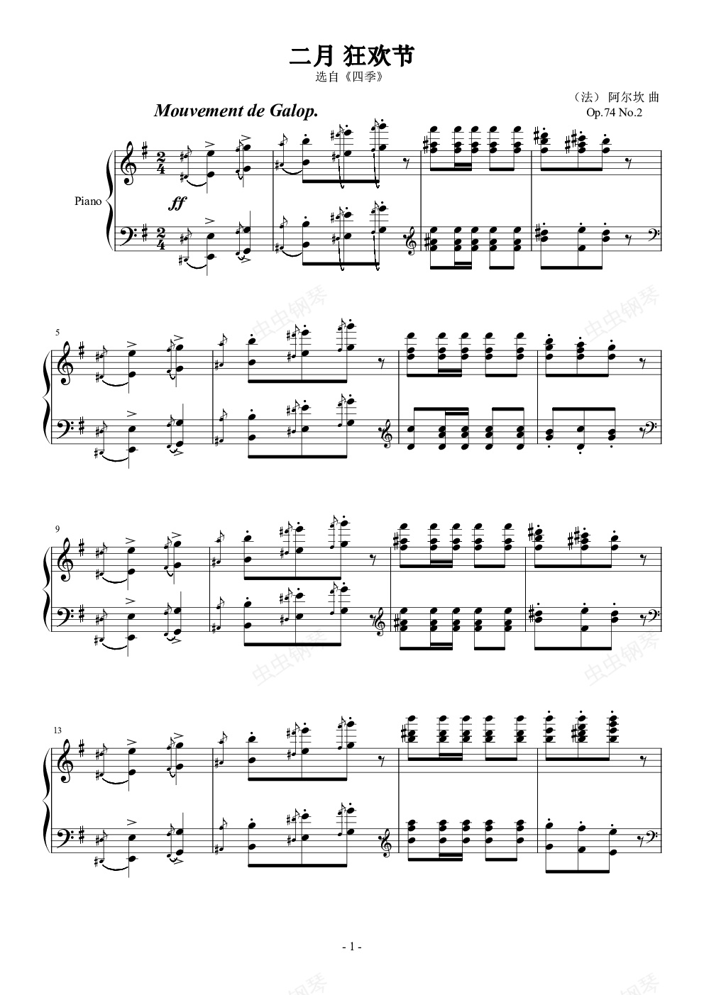钢琴谱:阿尔坎 二月 狂欢节 Op.74 No.2