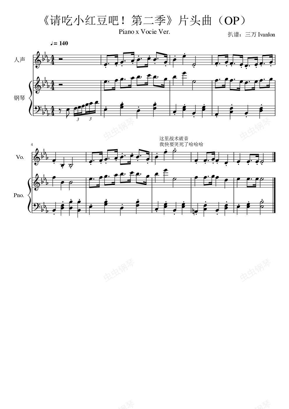 《请吃小红豆吧!第二季》开播啦!这个豆子怕不是要萌死我23333。第二季的OP和第一季一样都是萌萌的轻快风格,扒谱奉上。欢迎点赞,投币,转发,评论,打赏~扒谱不易欢迎支持~联系我[IMG]/pu/2019/1/17/__842__[/IMG]