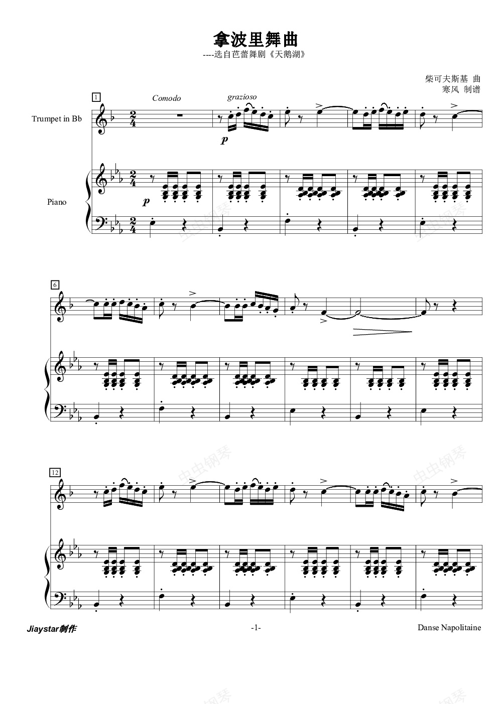 芭蕾舞剧《天鹅湖》里的一首小号独奏舞曲。