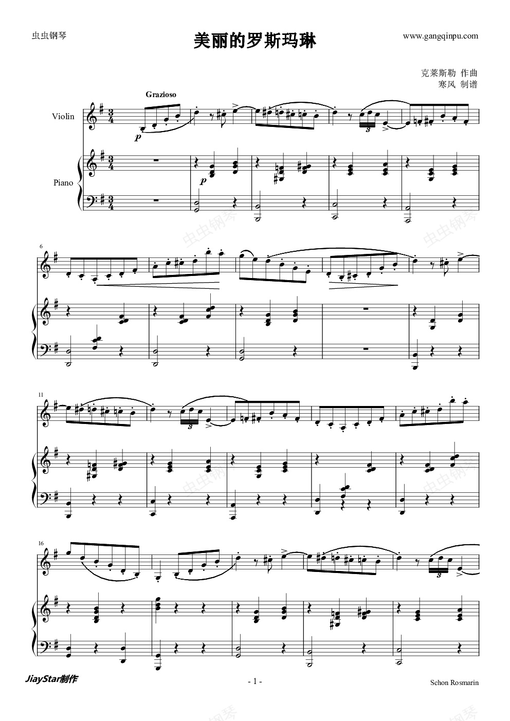 钢琴谱:美丽的罗斯玛琳-小提琴+钢琴