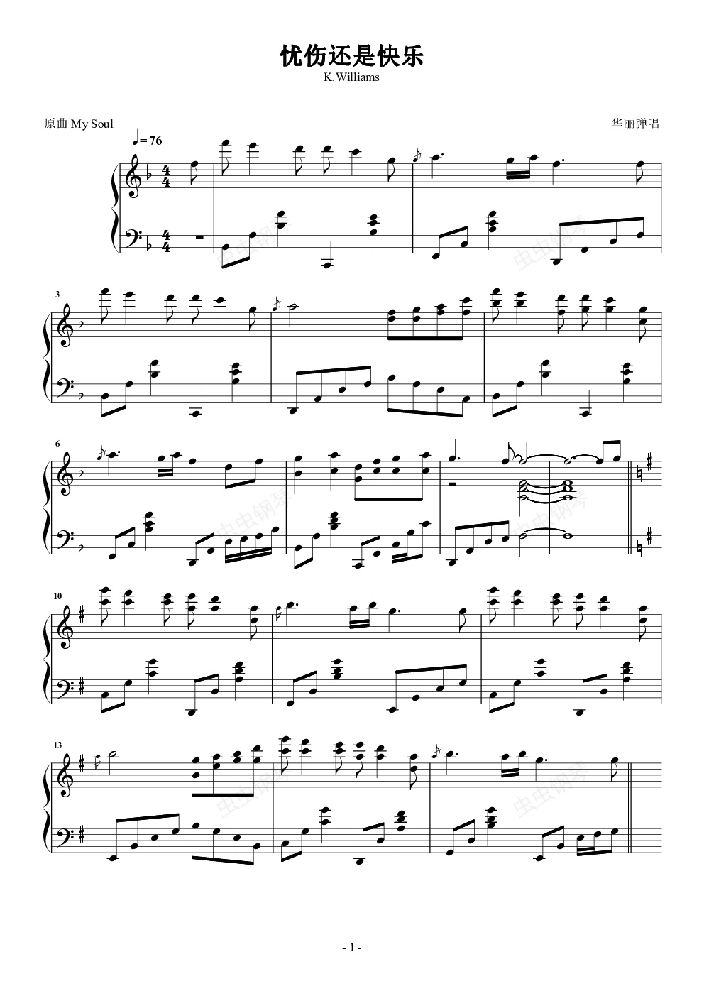 钢琴谱:忧伤还是快乐 华丽弹唱