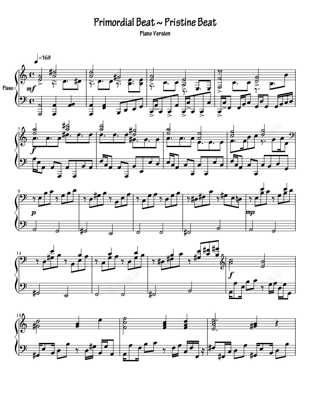 钢琴谱:【东方辉针城】原初的节拍 ~ Pristine Beat