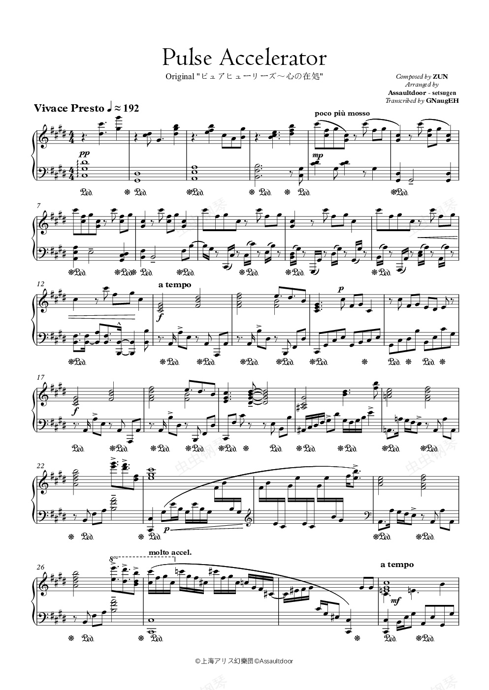 钢琴谱:【东方】【Assaultdoor】Pulse Accelerator (原曲:ピュアヒューリーズ~心の在処)