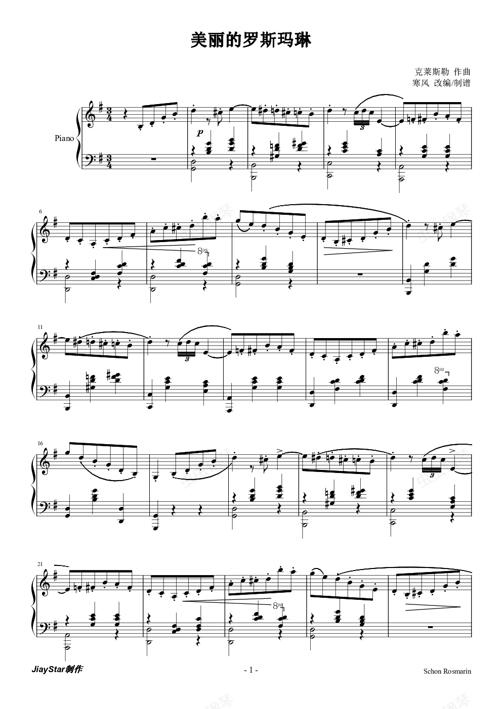钢琴谱:美丽的罗斯玛琳钢琴版
