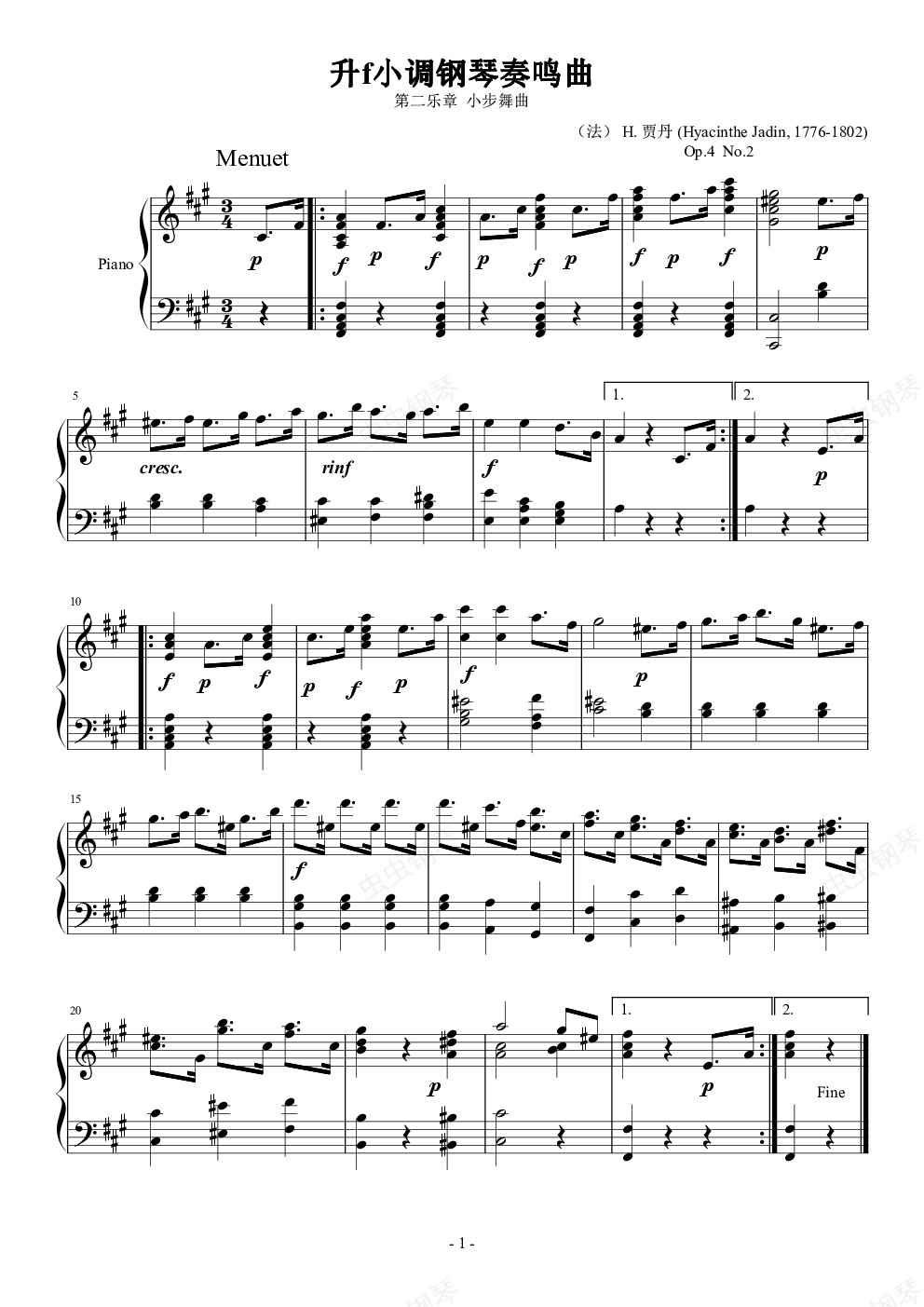 贾丹 升f小调钢琴奏鸣曲 Op.4 No.2 第二乐章 小步舞曲