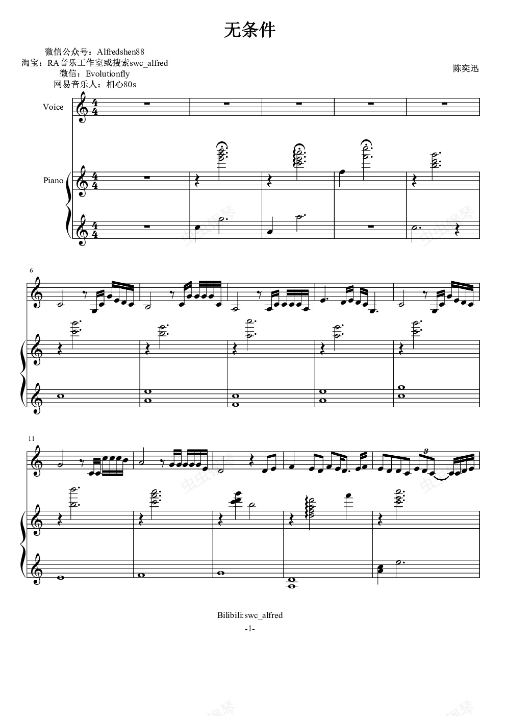 钢琴谱:无条件-伴奏