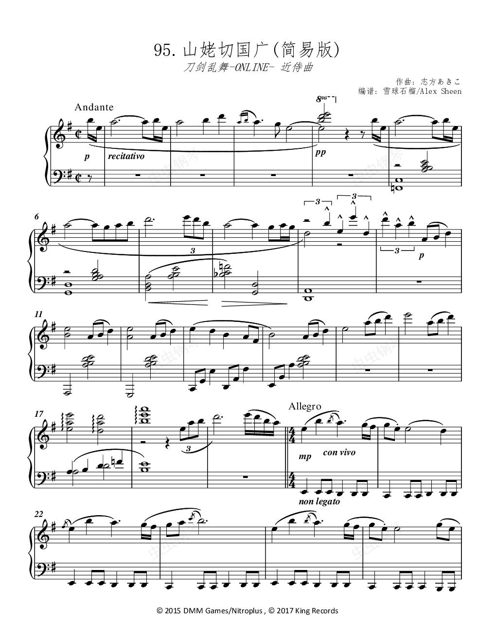 钢琴谱:山姥切国广 近侍曲 【刀剑乱舞】(简易版)