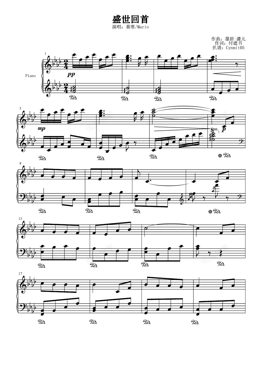 钢琴谱:盛世回首(《盛世鬼》慕寒|Mario演唱)
