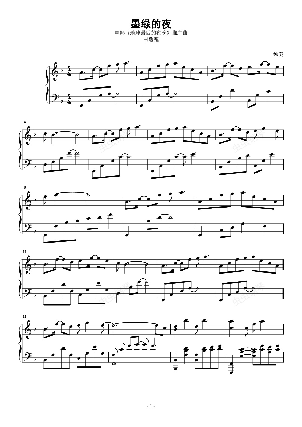 钢琴谱:墨绿的夜
