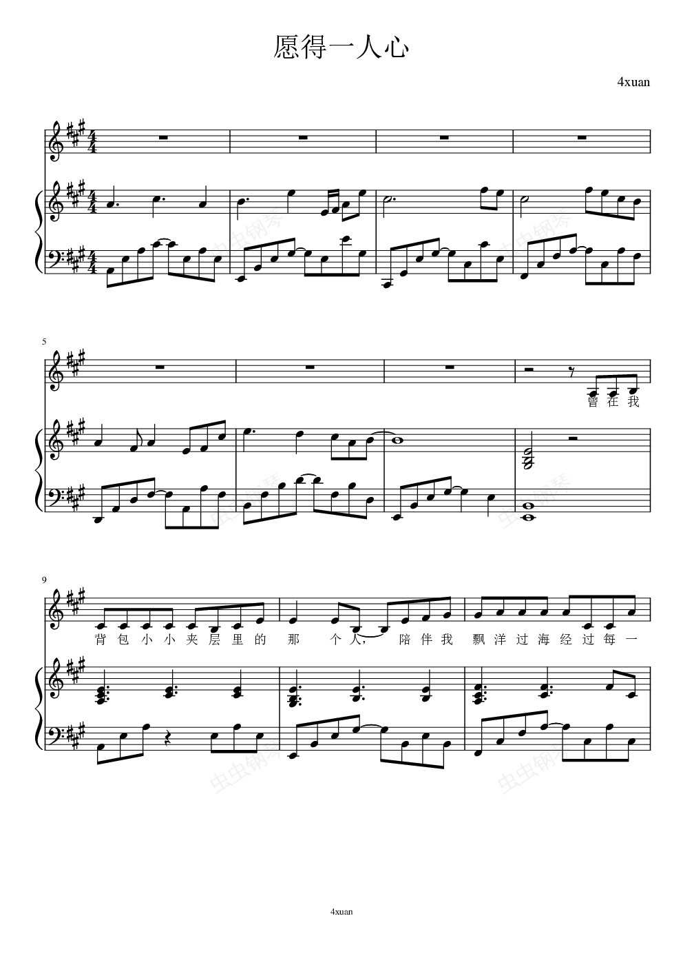 钢琴谱:愿得一人心弹唱谱(4xuan)