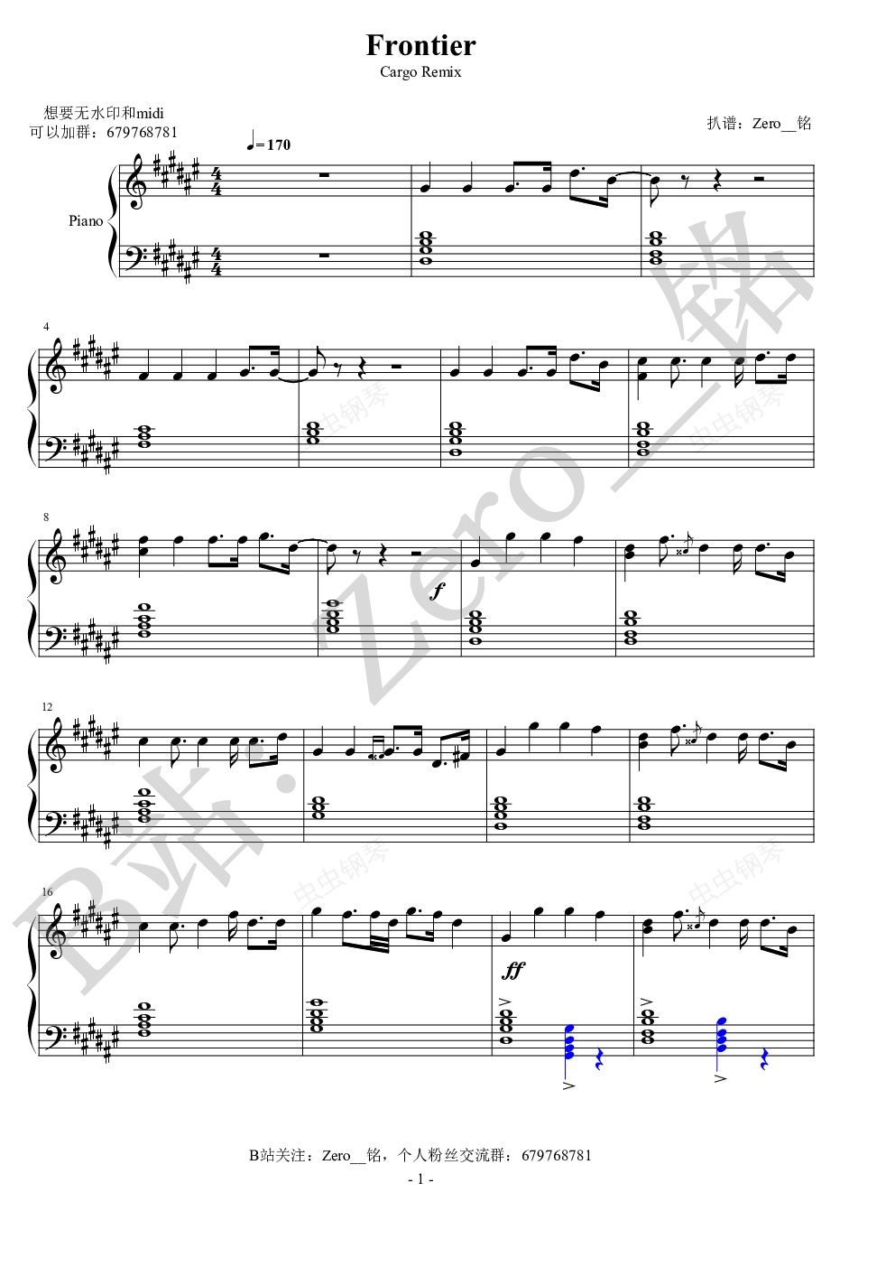钢琴谱:Frontier(Cargo Remix)【抖音热门电音】