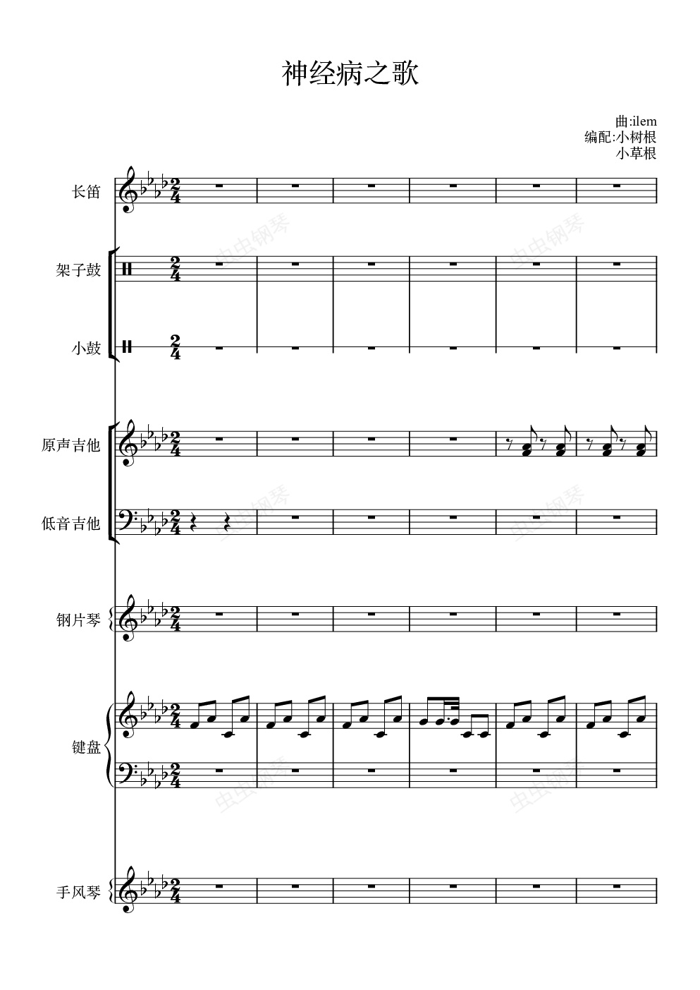 钢琴谱:神经病之歌总谱