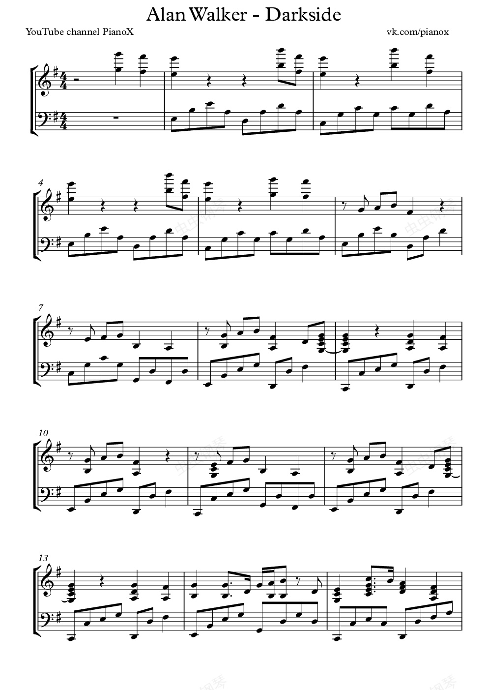 钢琴谱:Darkside