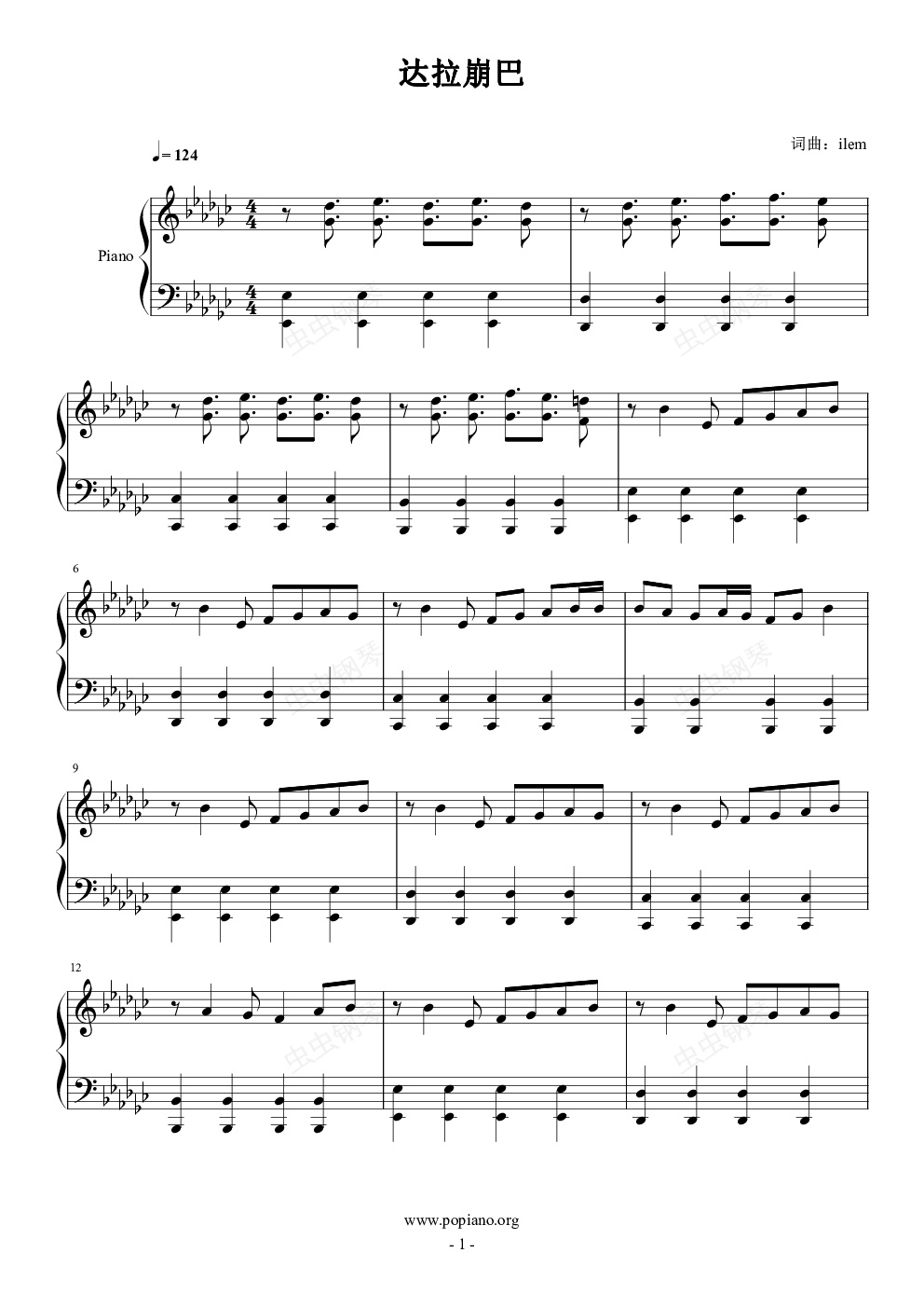 钢琴谱:达拉崩巴