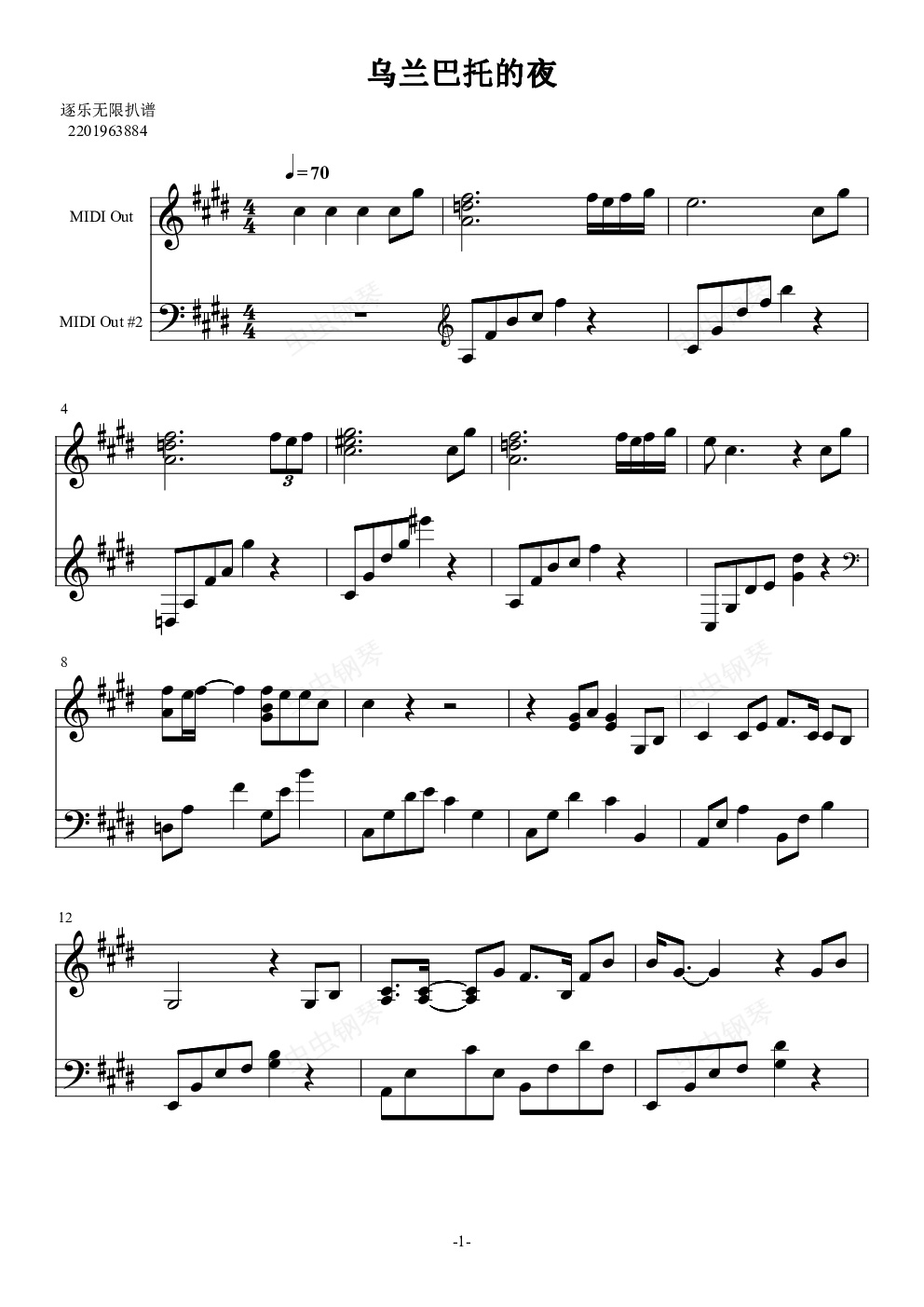 钢琴谱:《乌兰巴托的夜》谭维维版