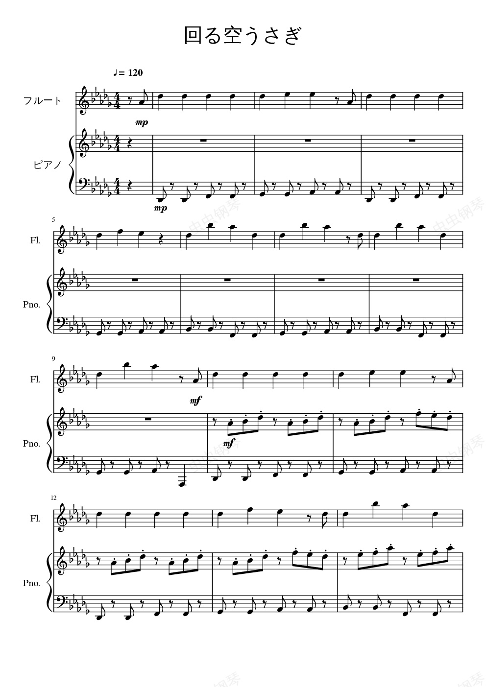 钢琴谱:回る空うさぎ(月兔回旋于空中)