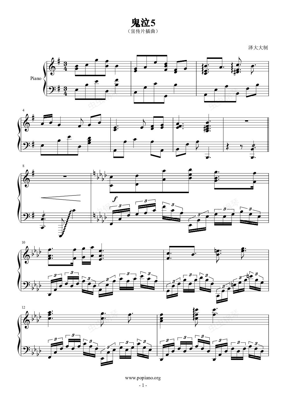 钢琴谱:鬼泣5(最终宣传片插曲)