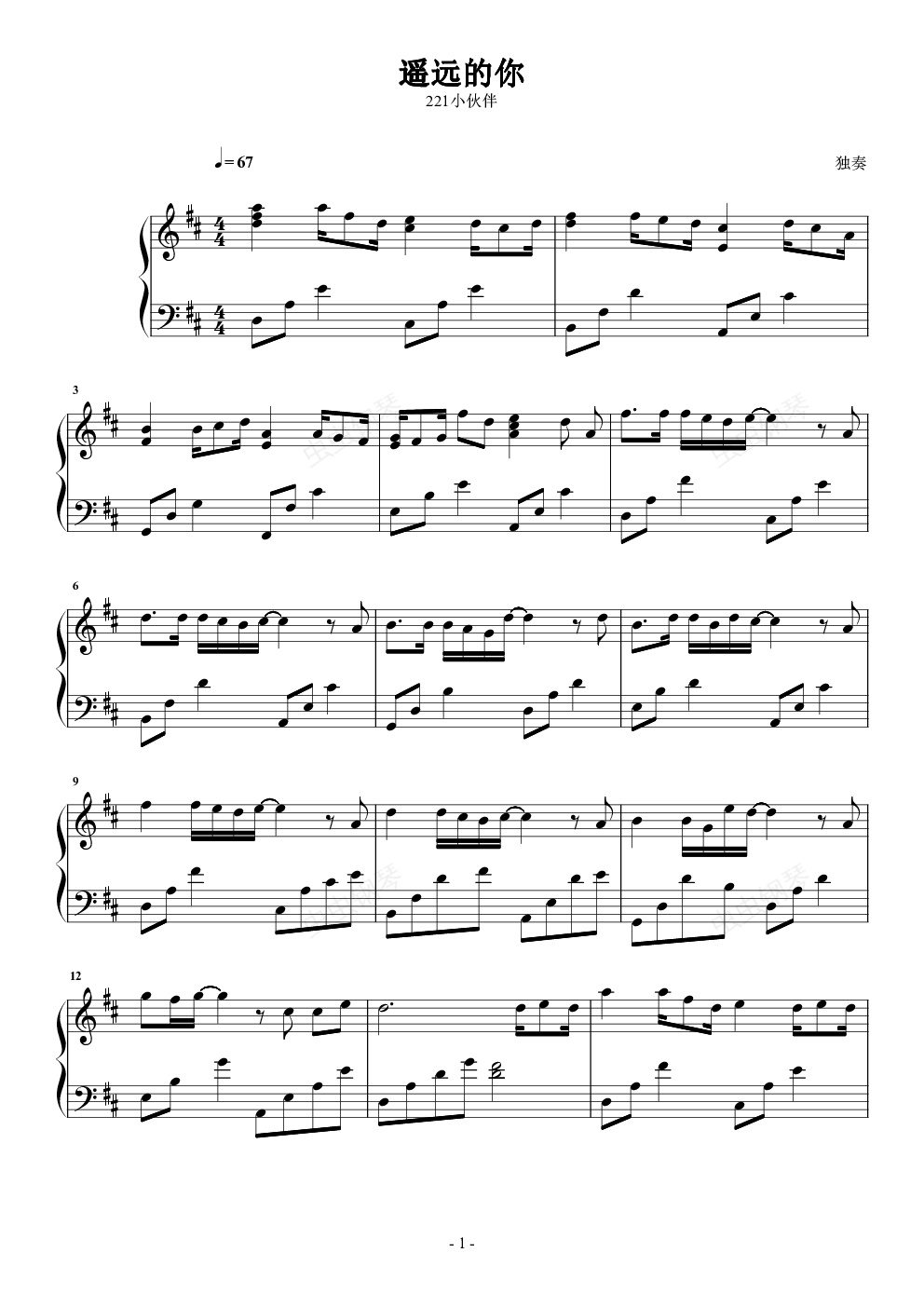 钢琴谱:遥远的你 独奏