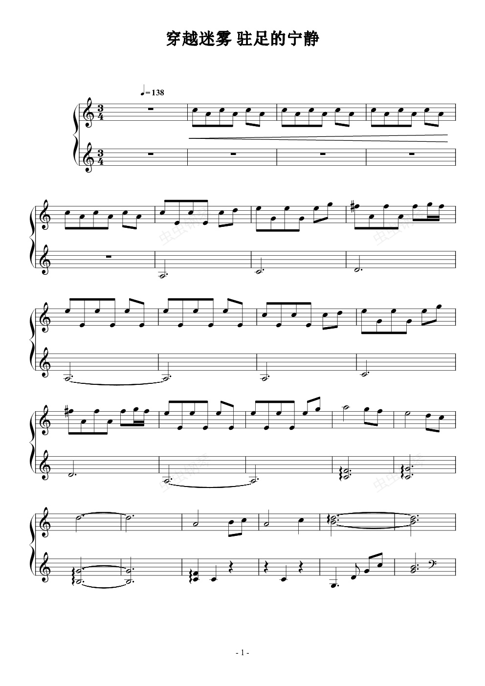 钢琴谱:穿越迷雾ttf  Peaceful Stagnation 驻足的宁静
