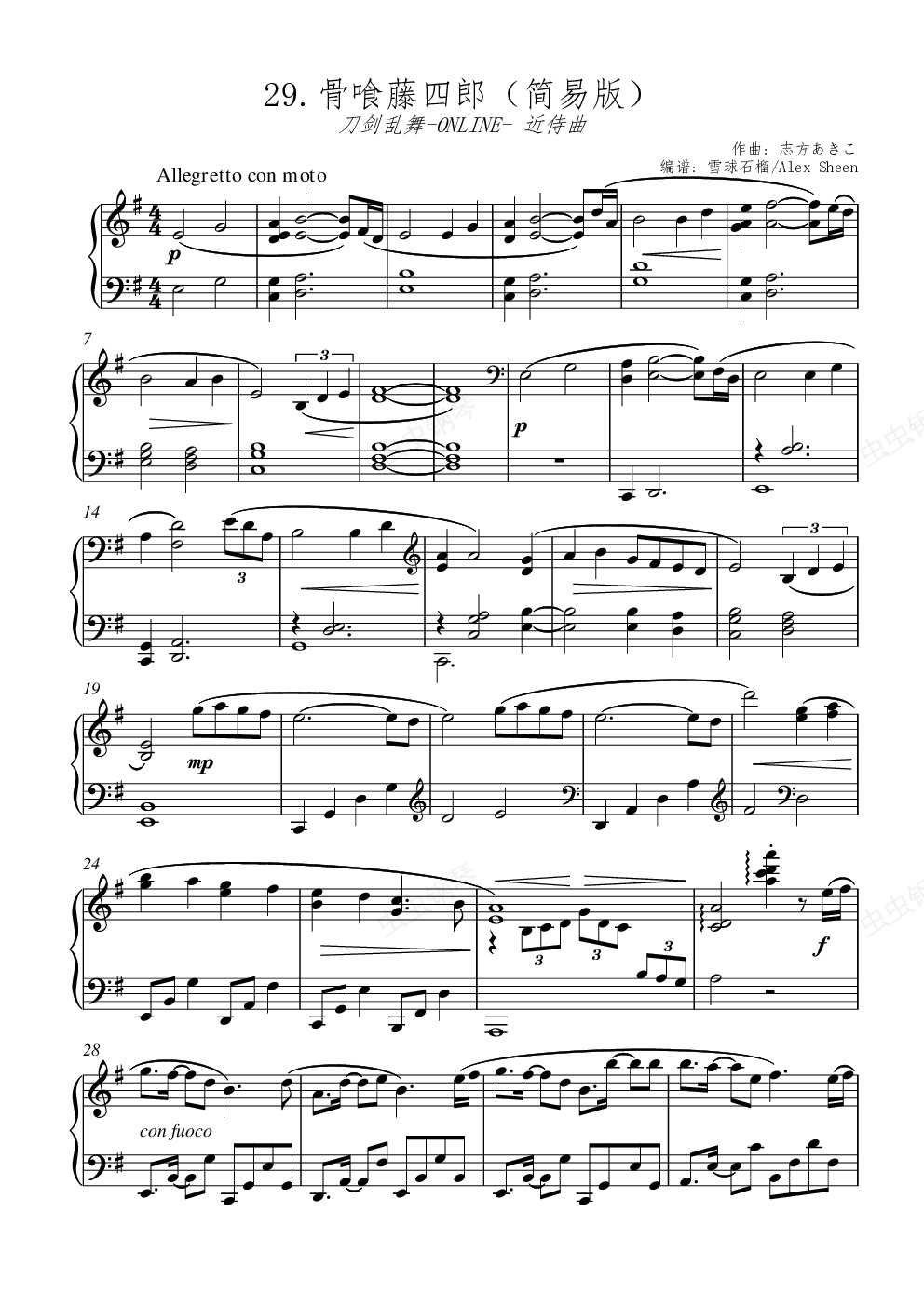 钢琴谱:骨喰藤四郎 近侍曲 【刀剑乱舞】(简易版)