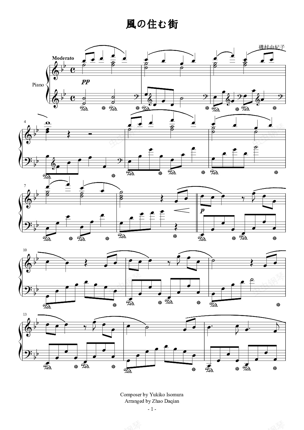 《风居住的街道》(日文名:風の住む街,罗马音:Kaze No Sumu Machi)是2003年矶村由纪子()与日本著名二胡演奏家坂下正夫(Masao)合作的经典曲目。《风居住的街道》是二胡与钢琴的搭配对话,令人耳目一新,整体上来说,二胡的应用令钢琴略显多余,或者说二胡本身的感染力超过了钢琴,二胡厚重的忧伤超越了钢琴的浪漫,钢琴和二胡的完美配合宛如一对恋人的絮语在听众的耳边呢喃,相互倾诉、互诉爱慕之心,但两个乐器发出的音调永远不会重合,而是像蝴蝶一样追逐,仿佛两个永远都不能在一起的恋人。我们改编的《风居住的街道》,将钢琴与二胡的音效完美结合,以下是具体的歌曲背景。爱情之花是绚烂夺目的,然而在风居住的街道中里的这对恋人,还未正式开始就要结束,让听众扼腕叹息,在岁月的流逝中,年华老去。然而那炽热的爱情,却还依旧静静等待那人的归来,曲中的恋人在余生中却再没有得到对方的回音。整首曲子,动与静,温婉与低沉,交相错出,就像两个恋人,相互爱慕,相互惦记,却是一个江南,一个塞北。山水万重,烟雨千声,只能隔着岁月的风尘,遥遥地相望。几许情深,几许惆怅,不思量,自难忘。每次听到这首歌都觉得那么的哀愁忧伤,多少人羡慕风的自由潇洒,却忘记了它只能随命运漂泊,如同曲中陷入爱情漩涡中的恋人,饱尝了爱情的凄美,却无法留住命中的爱人。只能似风一般,四处漂泊,却永远不能停留。街道静静的在那守候着风。却留不住风,街道是如此的熙熙攘攘,却也只能让风做短暂的停留。夜深了,街道在默默的等待风的再次归来,却不会怨恨风的漂泊,因为它知道风也无法做主自己的命运,如同曲中那陷入无尽等待的恋人一样,永远守护却不知归期。