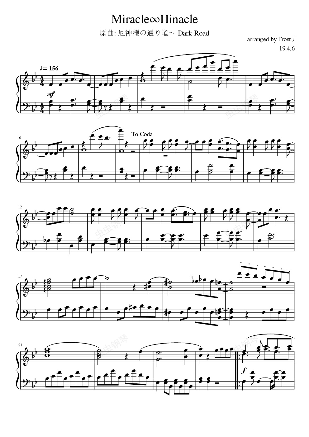 钢琴谱:(东方二创音乐)Miracle∞Hinacle