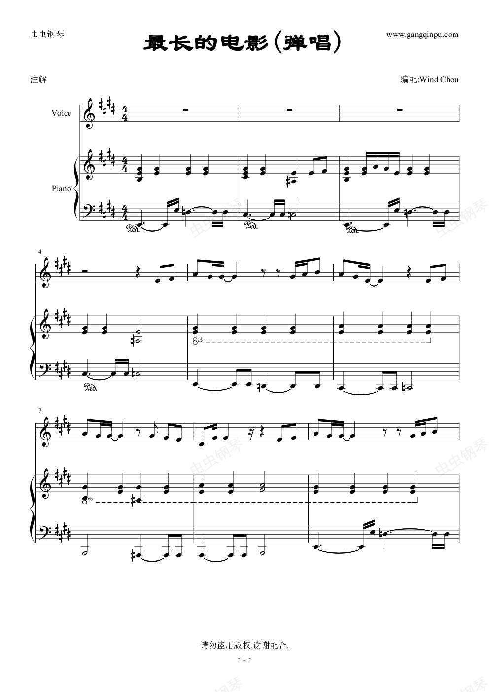 钢琴谱:最长的电影(弹唱版)-Wind Chou