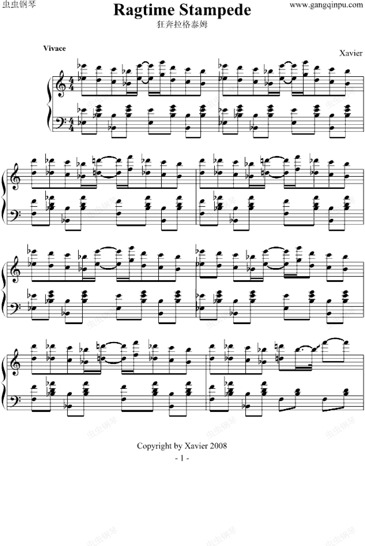 钢琴谱:狂奔拉格泰姆(Ragtime Stapede)