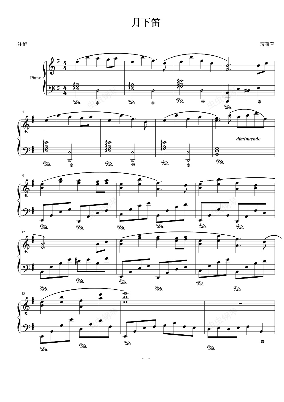 钢琴谱:月下笛*(带歌词)