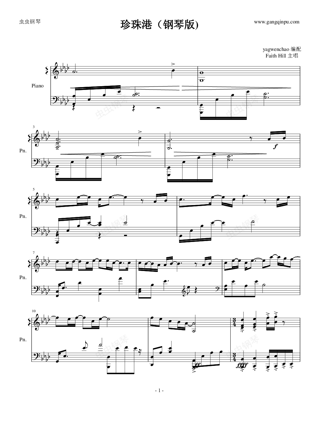 钢琴谱:珍珠港主题曲(there you'll be)