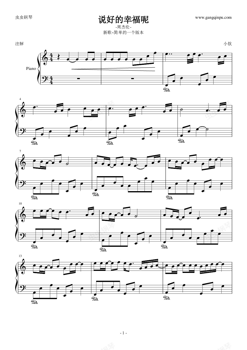 钢琴谱:说好的幸福呢-(简单版)