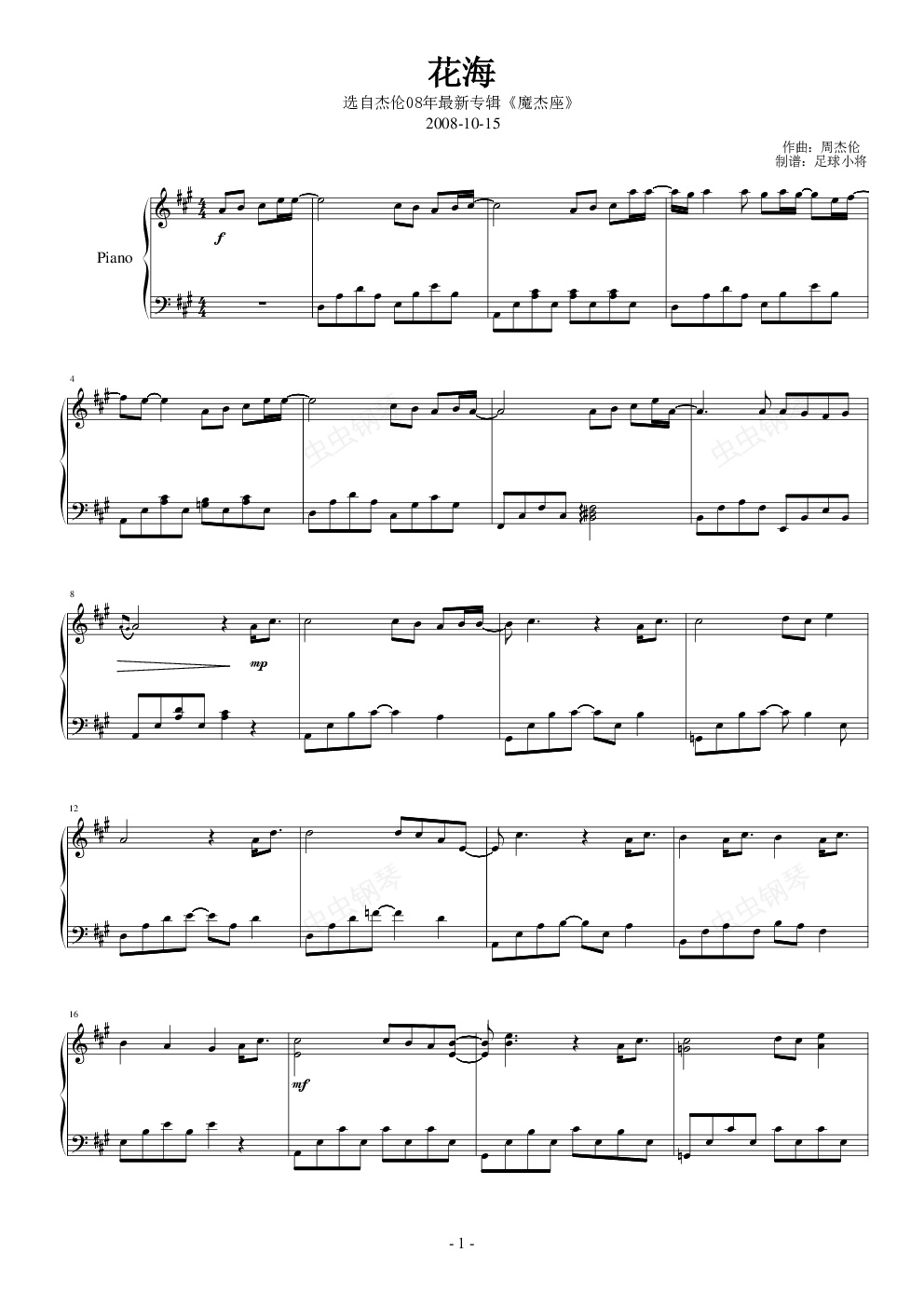 钢琴谱:花海