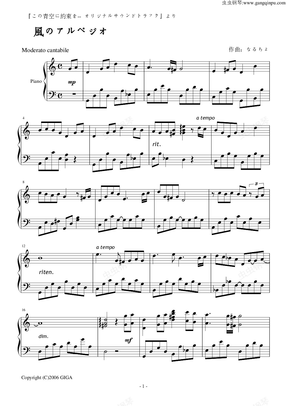 钢琴谱:風のアルペジオ