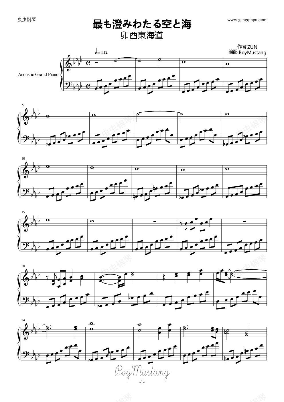 钢琴谱:[卯酉東海道]最も澄みわたる空と海