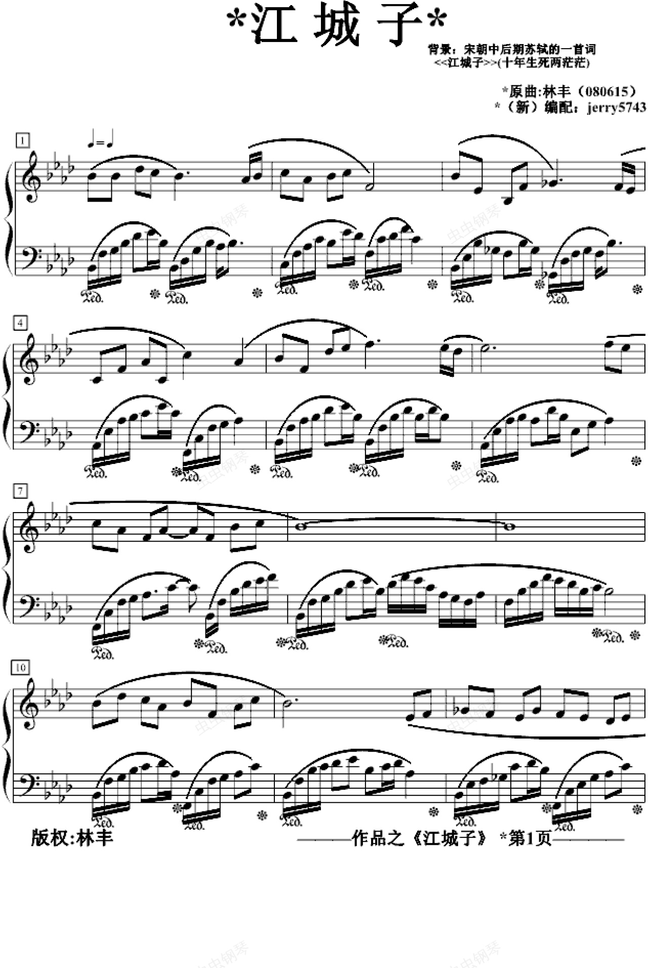 钢琴谱:江城子(新)