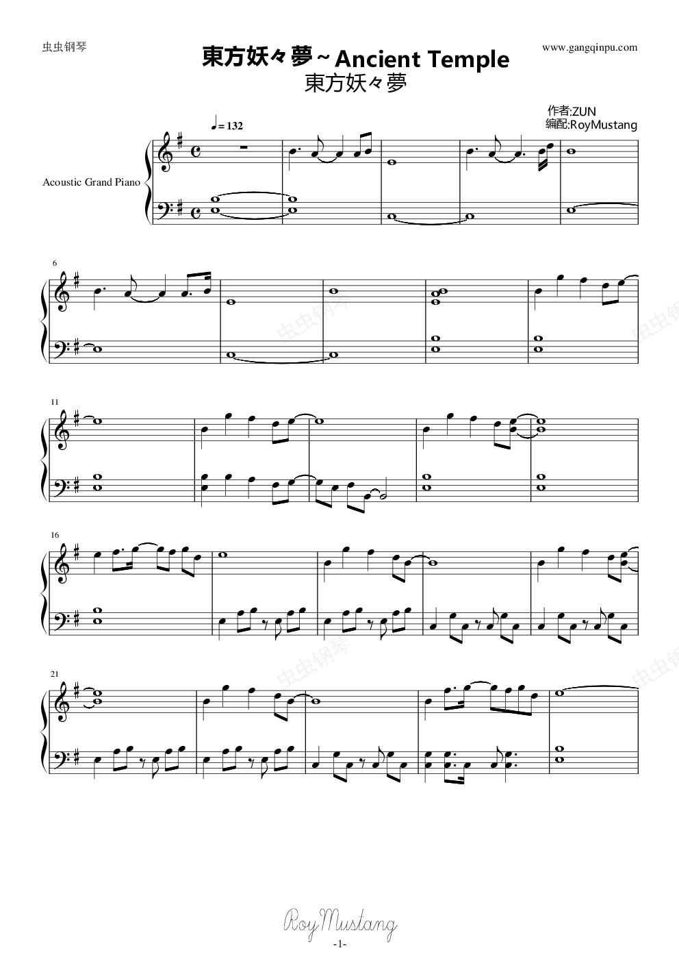钢琴谱:[东方妖々梦]東方妖々夢~Ancient Temple